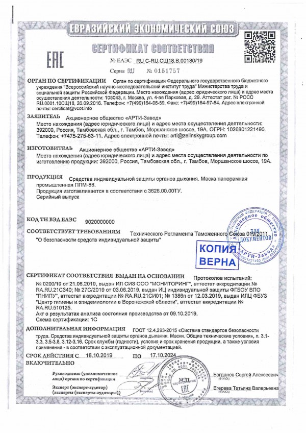 - Промышленная панорамная маска (ППМ) - 1 шт.;